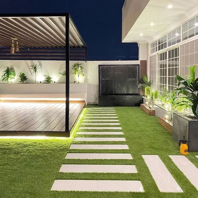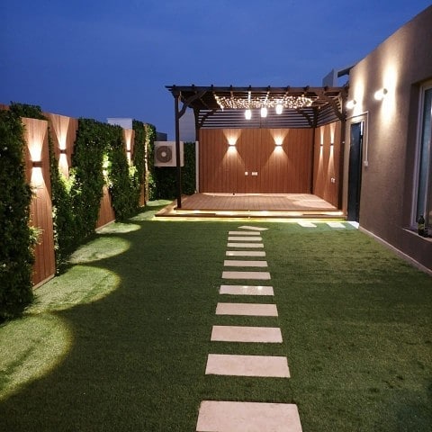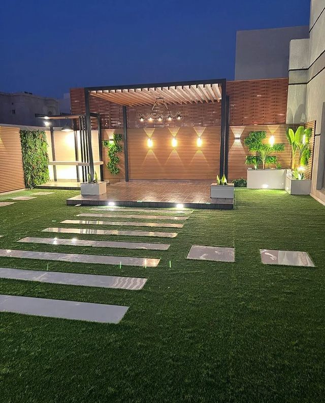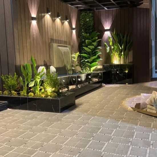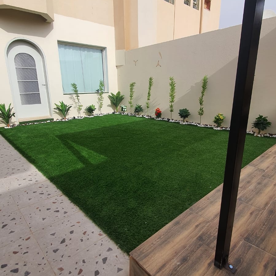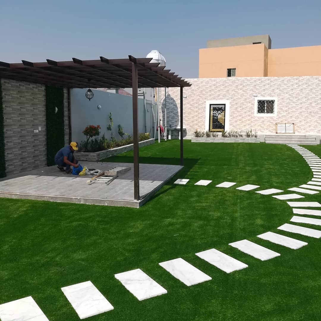 متخصصون في توريد وتركيب العشب الصناعي توريد وزراعة العشب الطبيعي تصميم الشلالات والنوافير تمديد شبكات الري تصميم المظلات